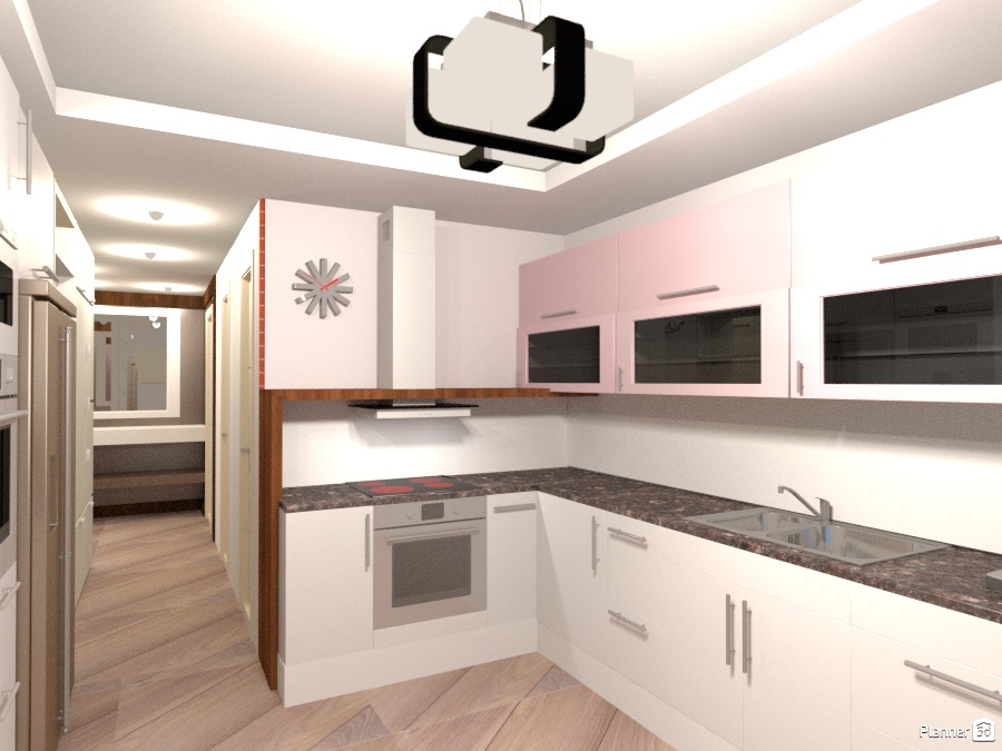 Линейная «двушка» — частый кандидат на профессиональный дизайн квартир П44Т. Популярным вариантом перепланировки является объединение центральной комнаты с кухней. При этом боковой коридорчик, ведущий из прихожей в кухню, объединяется с санузлом. Итогом такой перепланировки становится возросшая площадь санузла и более рациональное использование площади кухни.