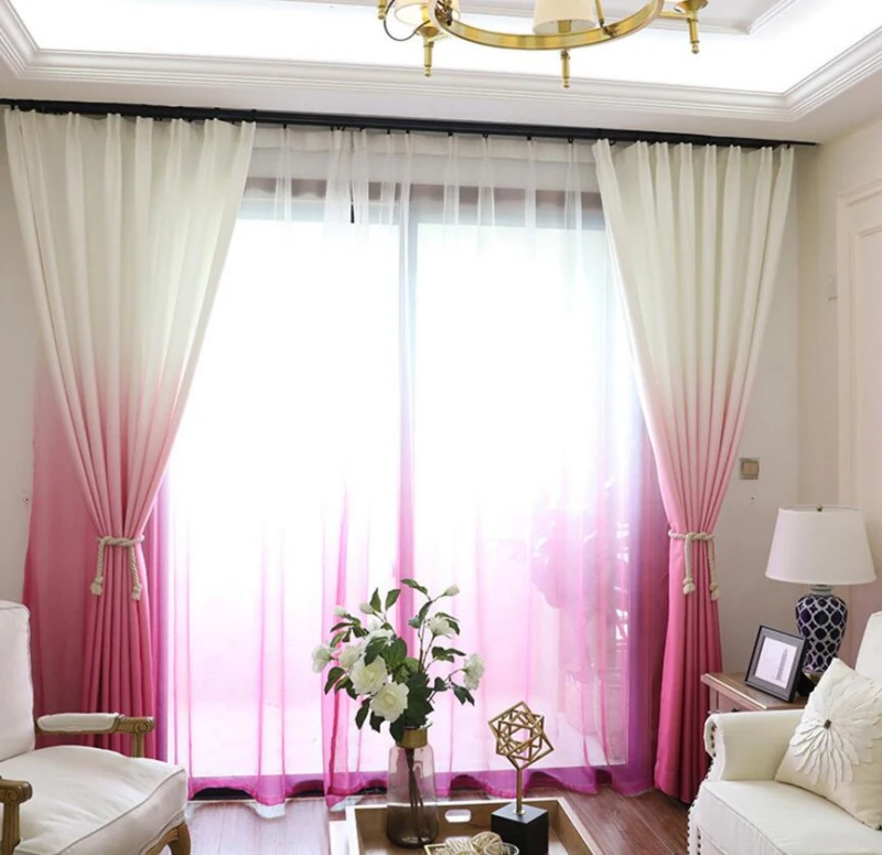 Хорошо смотрятся занавеси с разными оттенками розового.