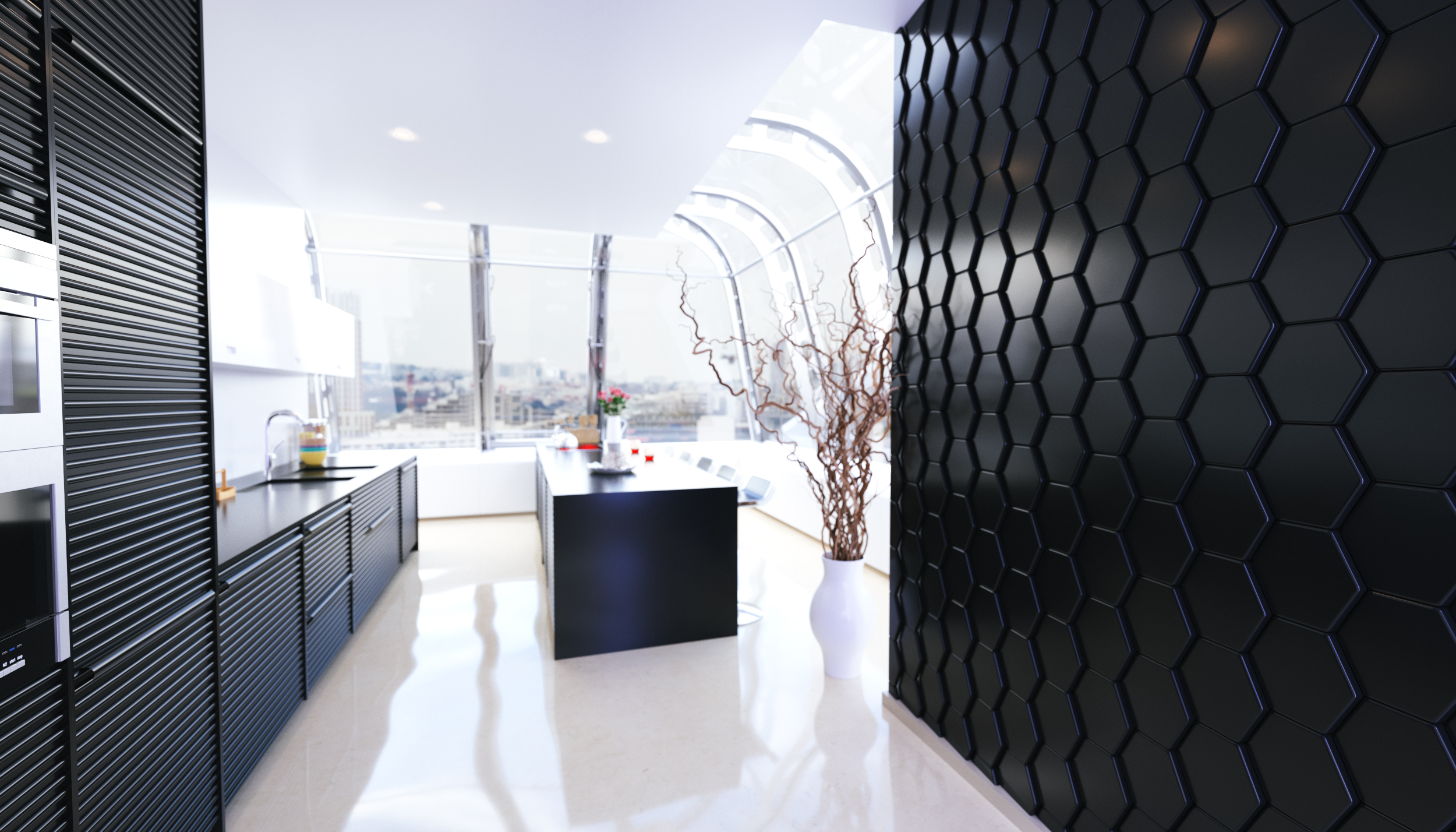 В результате создается одновременно цвет и фактура стен. Причем красивее смотрится отделка одной стены, ее части или колонны, арки, выступа, перегородки. То есть 3d панели – это материал для создания эффектного акцента в интерьере.