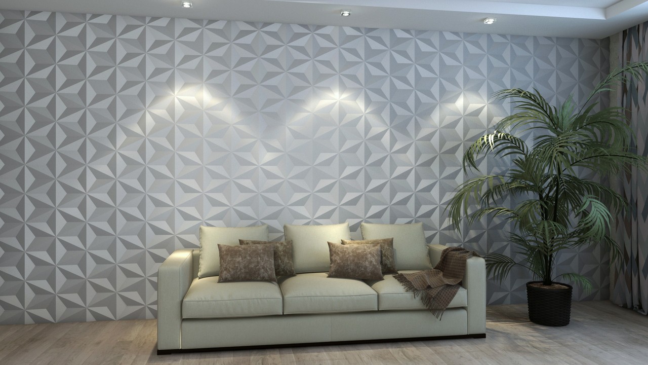 Современные 3D-панели решают еще и проблему неровных стен. Доступны несколько видов их крепления, в том числе, и при помощи клеящих составов, специальных направляющих или профилей из гипсокартона. Достаточная толщина панелей позволяет скрыть неровности стены, а эластичность – не допустить появления трещин даже при ощутимом изгибании.