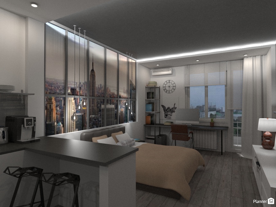 Конечно, в маленькой квартире – студии отдельное рабочее место вы вряд ли сделаете, но оптимальным вариантом его размещения может стать спальная зона.