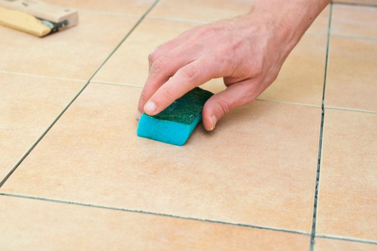 В ходе затирки межплиточных швов важно вовремя смыть следы затирки с поверхности плитки, иначе они останутся навсегда.
