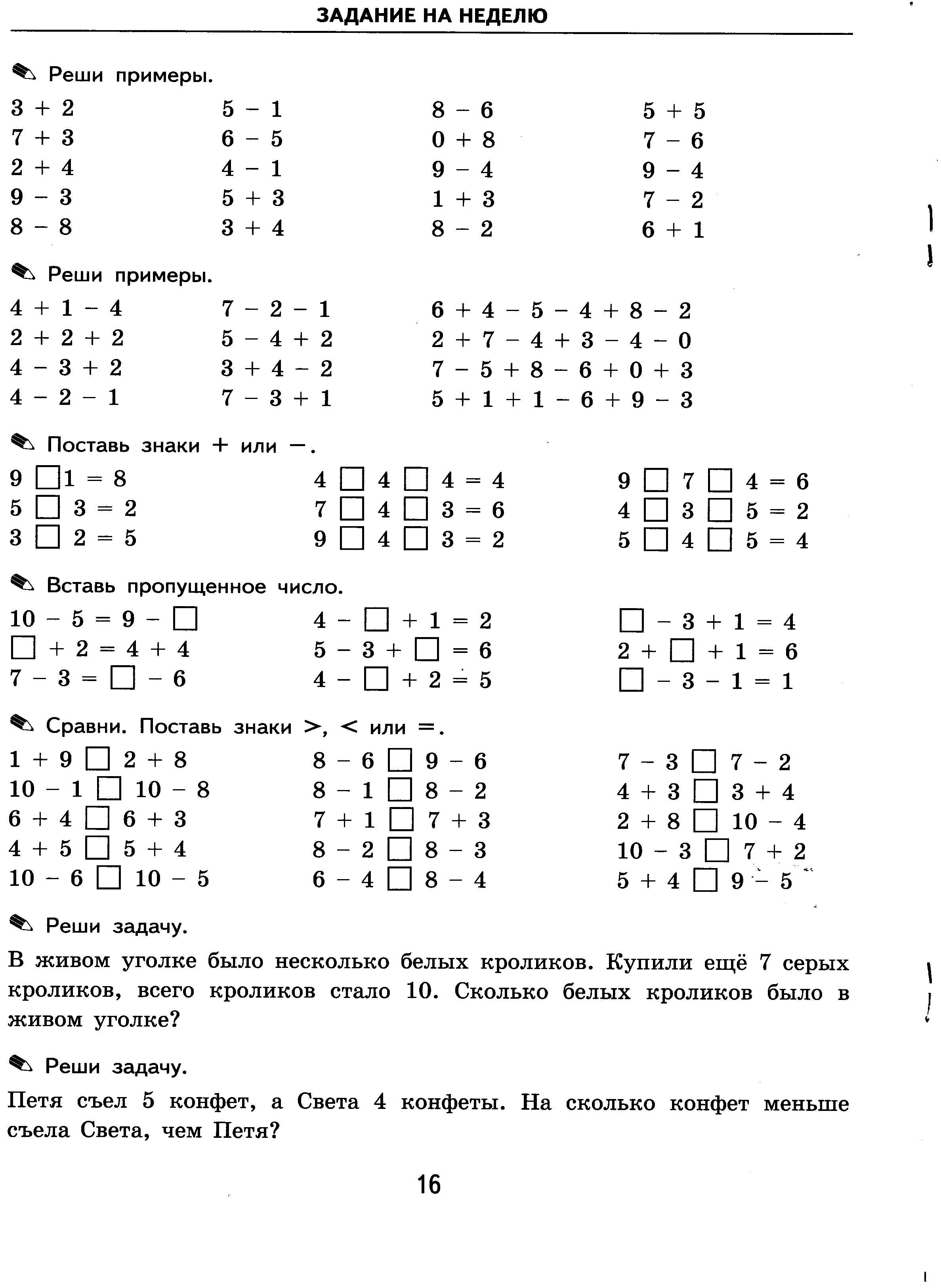 1 класс — Сложение и вычитание в пределах 10Время прохождения ~5-10 мин