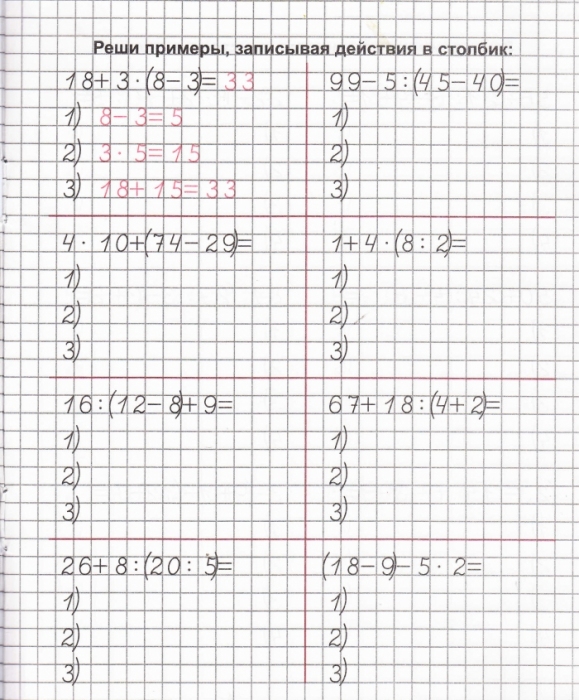 3 класс — Порядок выполнения действий (сложение, вычитание, умножение, деление) со скобкамиВремя прохождения ~5-10 мин