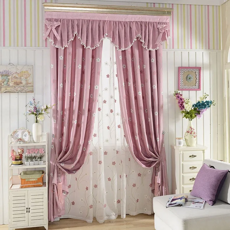 комнаты для двух детей. Используйте двойную штору, розовый цвет для девочки и