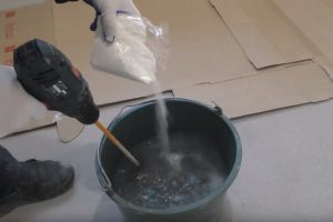 - Далее необходимо тщательно перемешать красящий состав, чтобы исключить его неоднородность. При необходимости нужно добавить в краску определенное количество колера. Чтобы определиться с пропорциями, можно предварительно смешать компоненты в небольшом объеме.