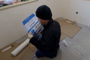 - Прежде чем приступить к покраске, надо защитить от загрязнения поверхности, которые не будут окрашиваться. Для этого можно воспользоваться малярным скотчем. Пол следует застелить клеенкой.