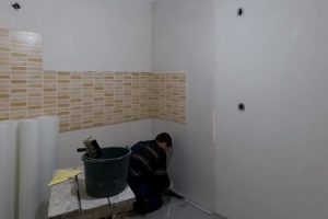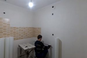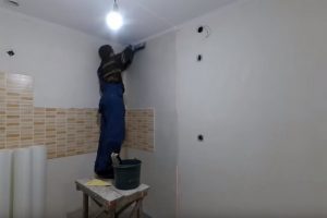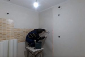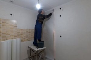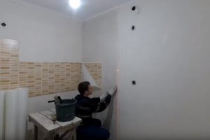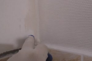Стены перед наклеиванием «паутинки» должны быть оштукатурены, зашпаклеваны черновым слоем шпаклевки и вышкурены. При наличии больших трещин их надо расшить, проклеить дополнительно бумажной лентой или лентой-серпянкой и зашпаклевать прочной шпаклевкой.
