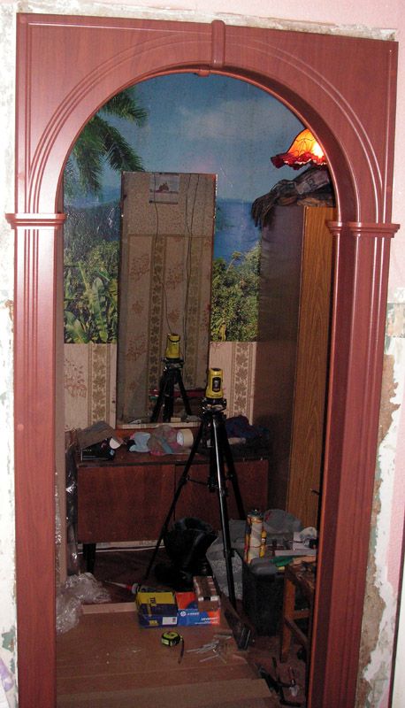 Для начала Вам необходимо замерить размеры дверного проема, а также определить кривизну пола с помощью уровня. В идеале — пол должен быть полностью ровным, а арка идеально подходить для Вашего дверного проема. Это поможет избежать неприятных неожиданностей во время монтажа. После того, как Вы произвели все необходимые замеры, Вам необходимо привести к нужным размерам приобретенную арку. Для этого достаточно будет просто отпилить лишнюю длину у расширителя.